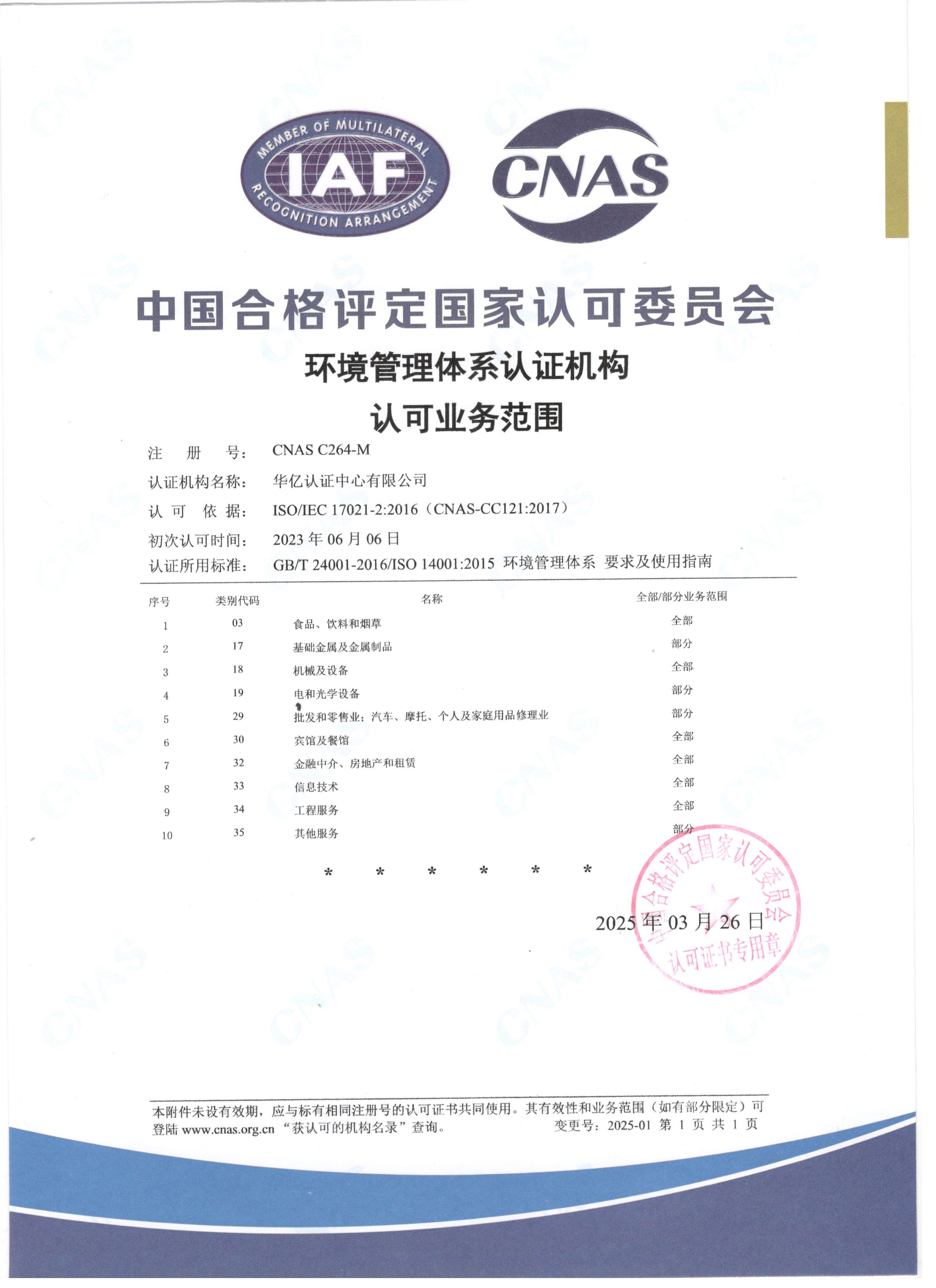 华亿认证中心再获CNAS扩项认可,新增环境、职业健康安全管理体系三大业务范围认可资质